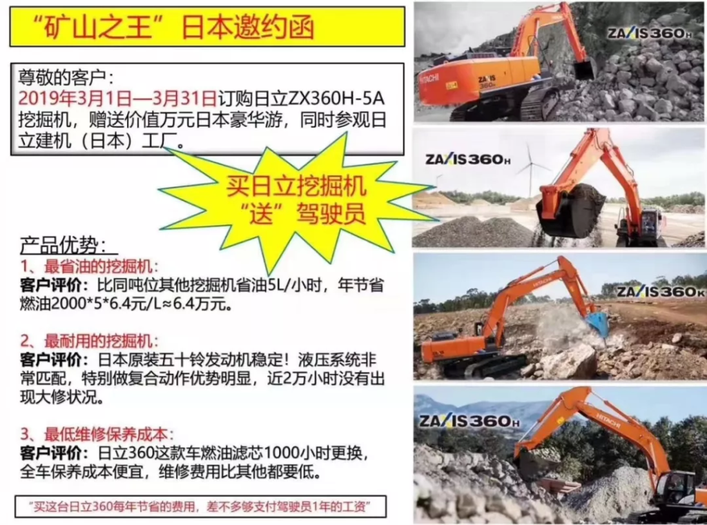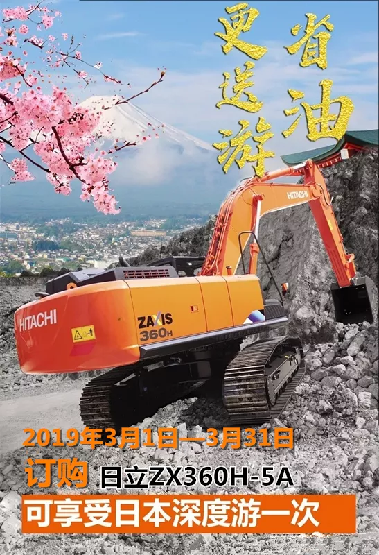 說了這么多還是得您使用了才知道,即日起購買日立ZX360H-5A,重慶日和東浦邀請您去日本看櫻花,購買即送日本深度游一次,心動不如行動馬上聯(lián)系當?shù)貥I(yè)務(wù)人員購買吧!
