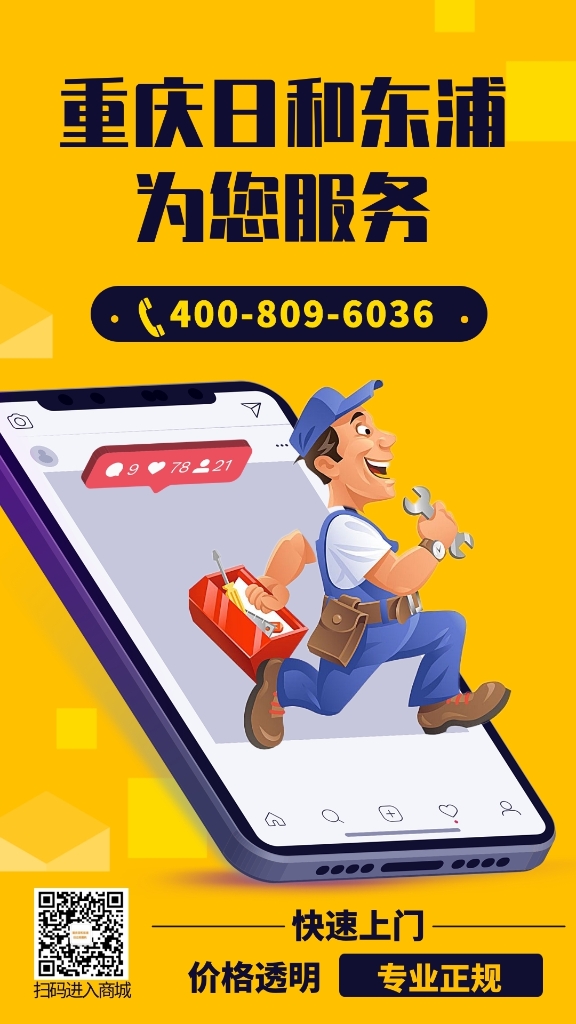 通知:重慶日和東浦現(xiàn)已開通夜間派工服務(wù),報(bào)修電話24小時(shí)接聽!